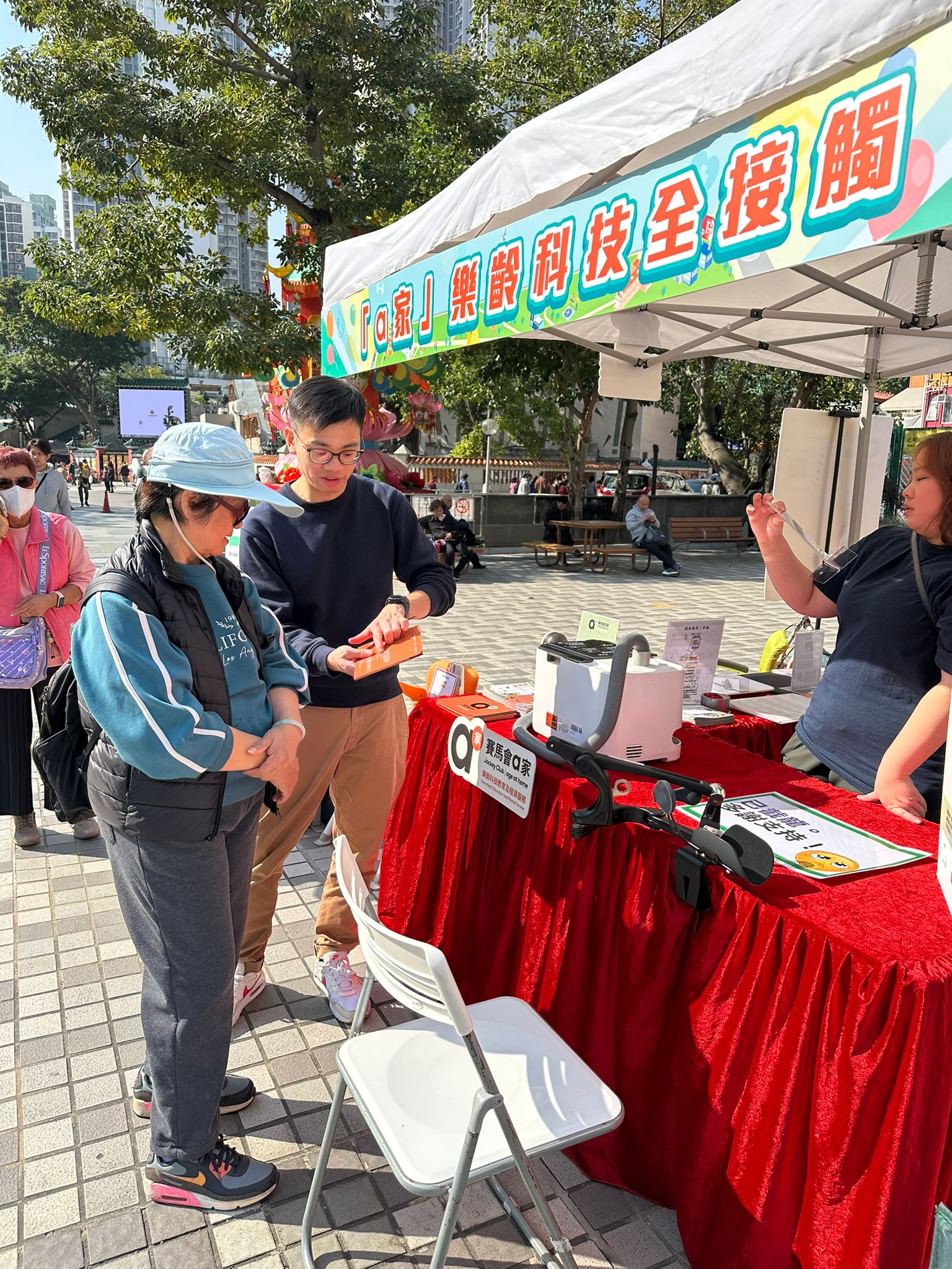 賽馬會「a家」於1月18日參與香港佛教醫院、東華三院黃大仙醫院、聖母醫院聯合舉辦的「社區健康齊關注2025」活動,於黃大仙廣場設立「健康互動站」,以「a家」樂齡科技全接觸為主題,向公眾介紹樂齡科技的多元應用,並展示多款輔助科技產品,包括便攜式洗頭器、動力手臂及無線防遊走套裝等。